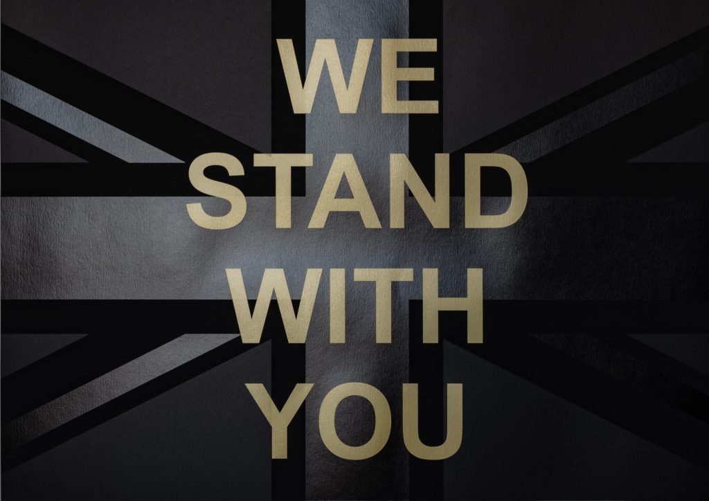 Scroll down to download ‘WE STAND WITH YOU’ an artwork by artist, Elsa James, created in response to recent international events.